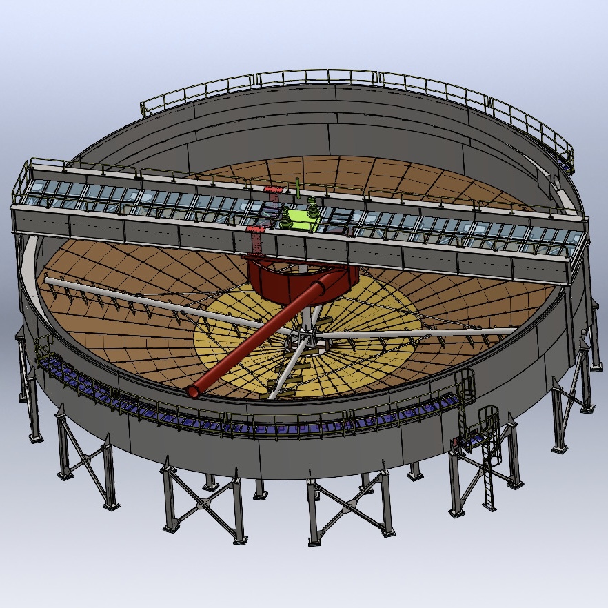 Изготавливаем как классические радиальные сгустители с чашами из металла или бетона диаметром до 50 метров, так и пластинчатые (ламельные) сгустители.